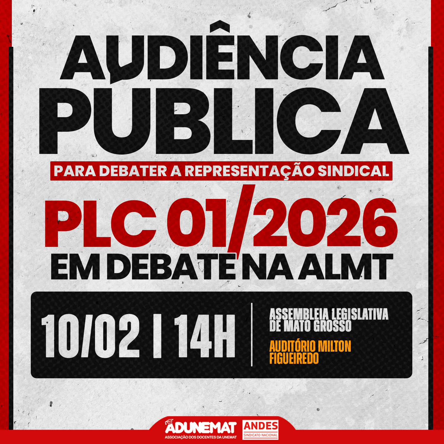 Audiência pública no dia 10 debate PLC 01/2026, que restringe licença classista em Mato Grosso