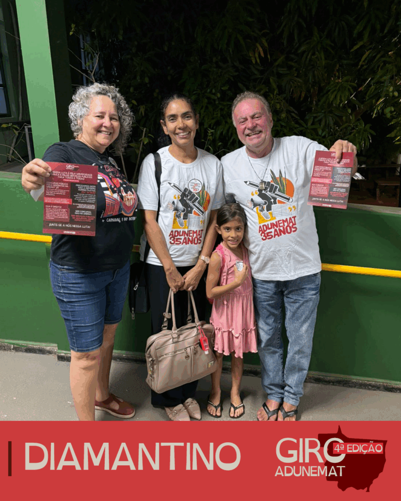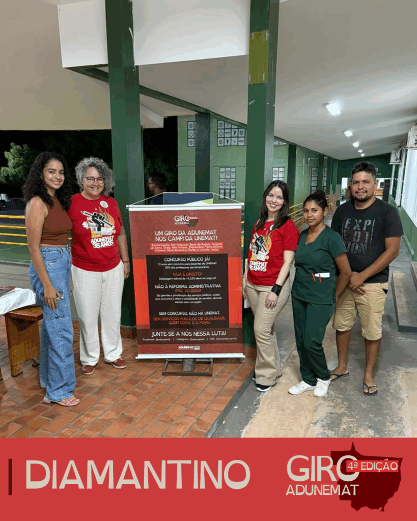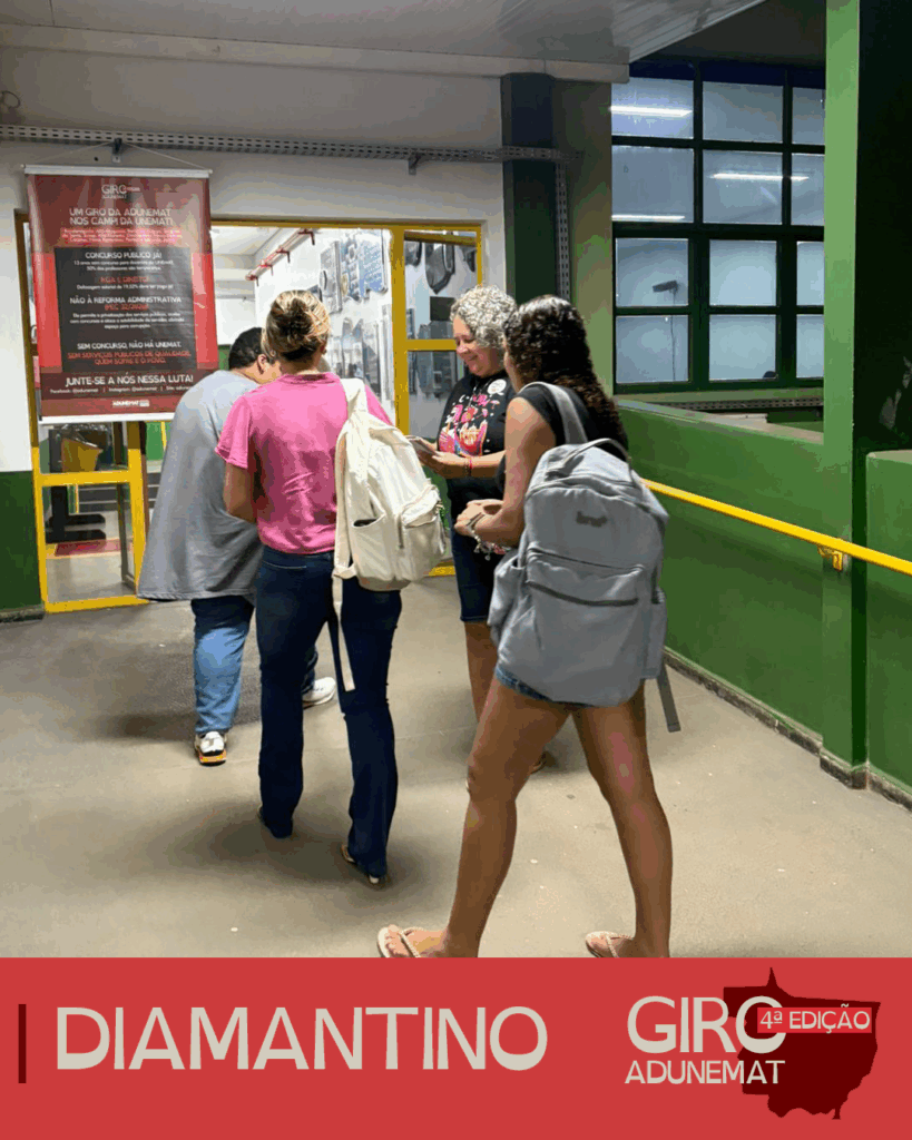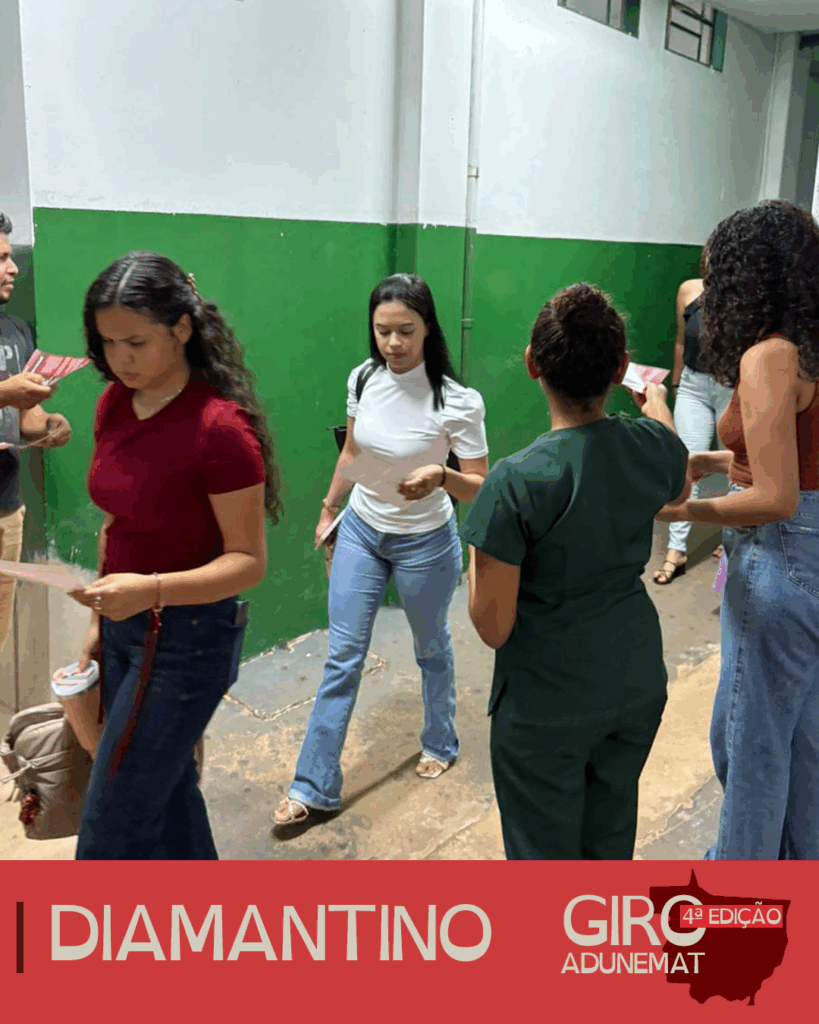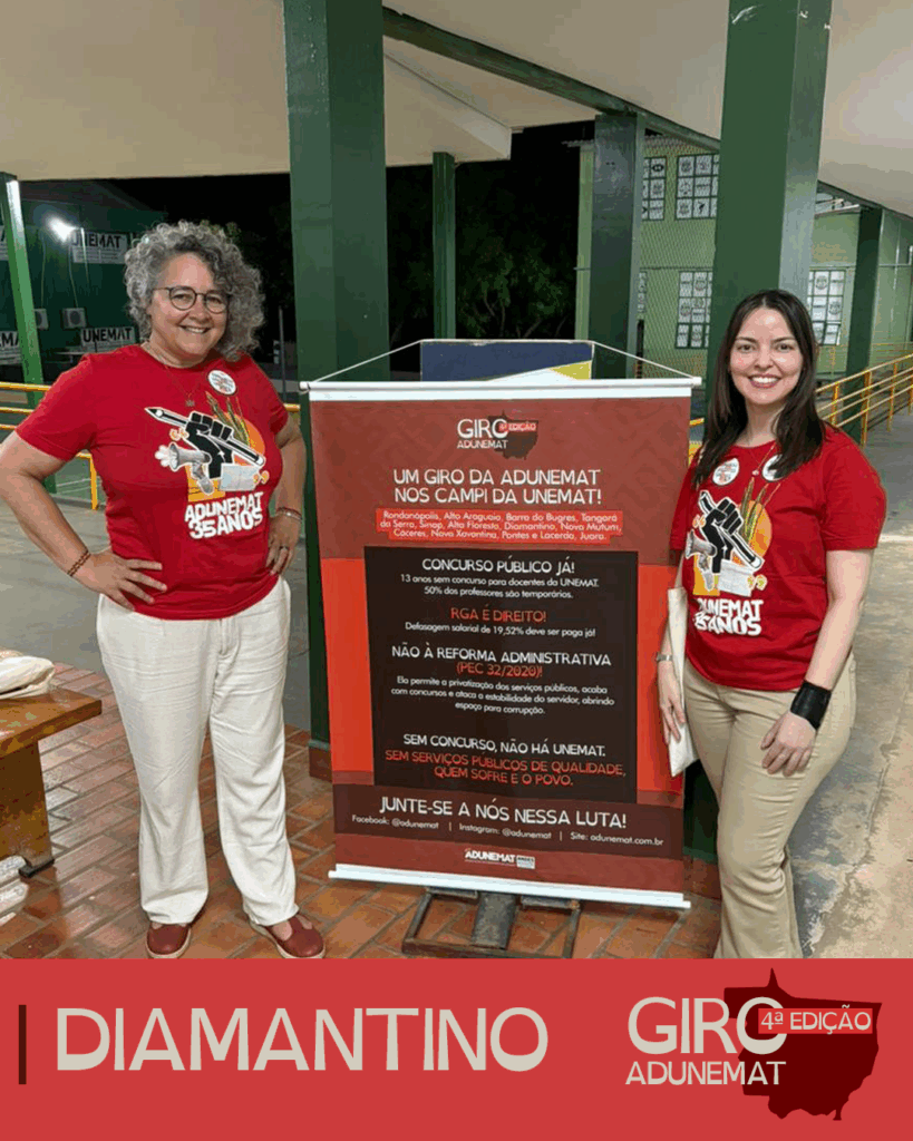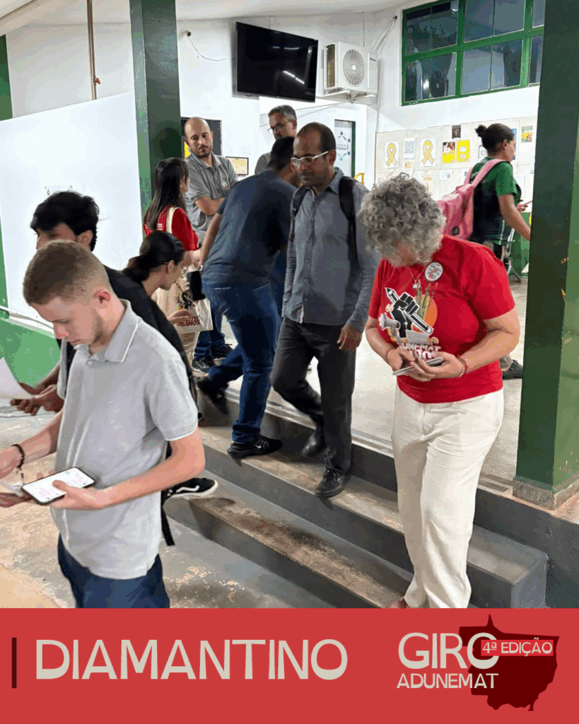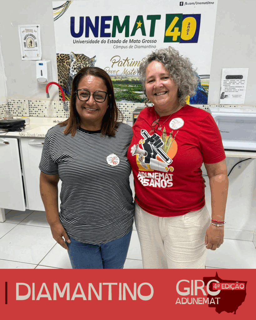 Em Diamantino, as atividades foram realizadas nos dias 29 e 30 de setembro e contaram com a participação da presidente da ADUNEMAT, professora Luciene Neves, que tem acompanhado todo o percurso do Giro, e da secretária-geral da entidade, professora Bruna Freitas, do campus local.