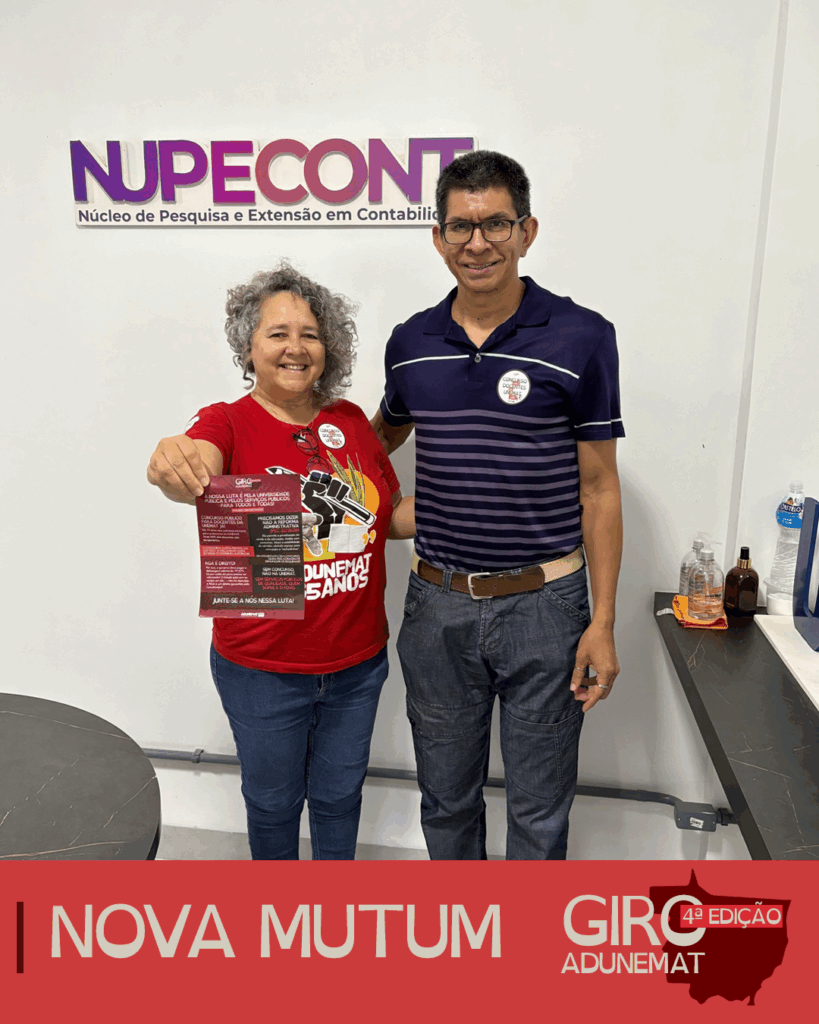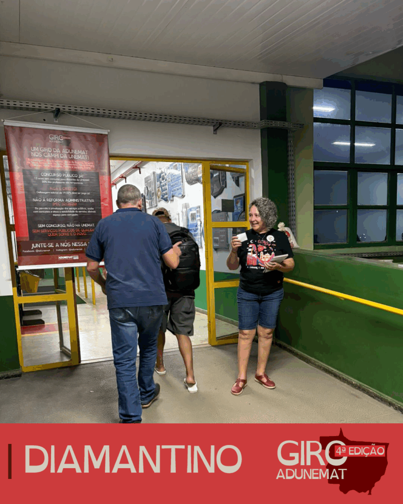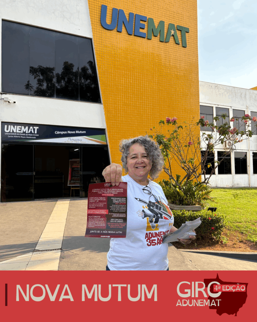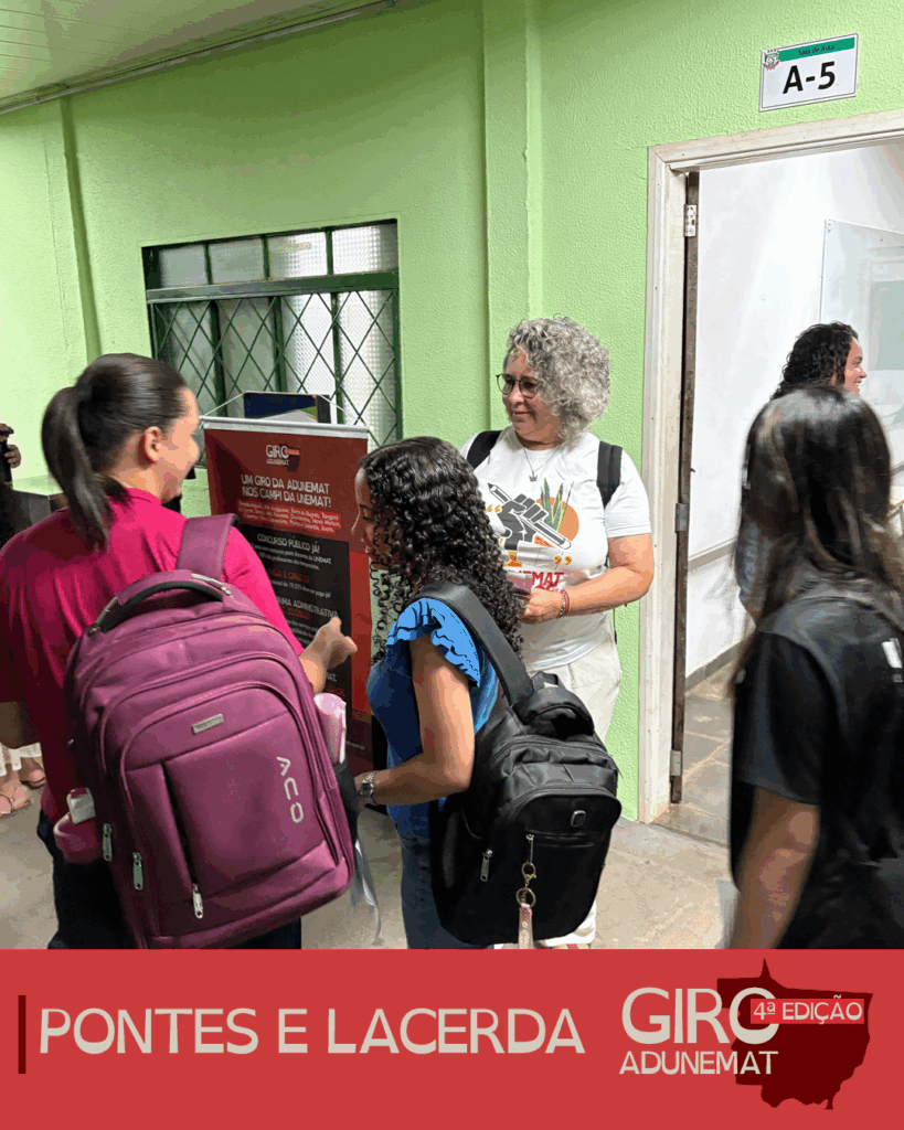 A ADUNEMAT (Associação dos Docentes da Universidade do Estado de Mato Grosso), Seção Sindical do ANDES-SN, encerra nos dias 29 e 30 de outubro a 4ª edição do Giro ADUNEMAT, com visita ao campus da UNEMAT em Juara. A atividade marca o fim de uma jornada que percorreu 11 cidades desde setembro — e que, ao todo, somará 12 campi visitados em todo o estado.