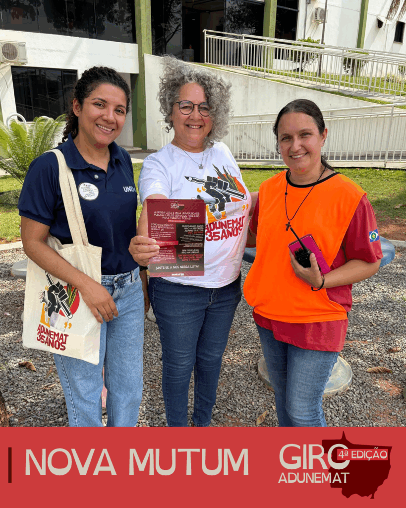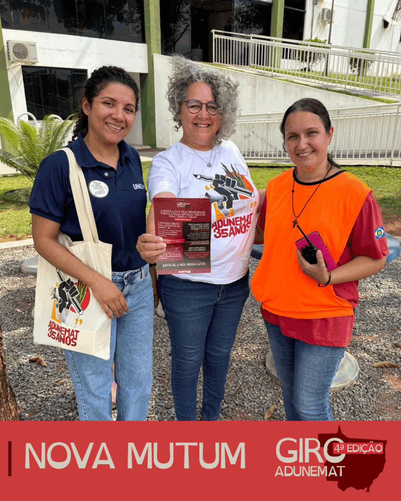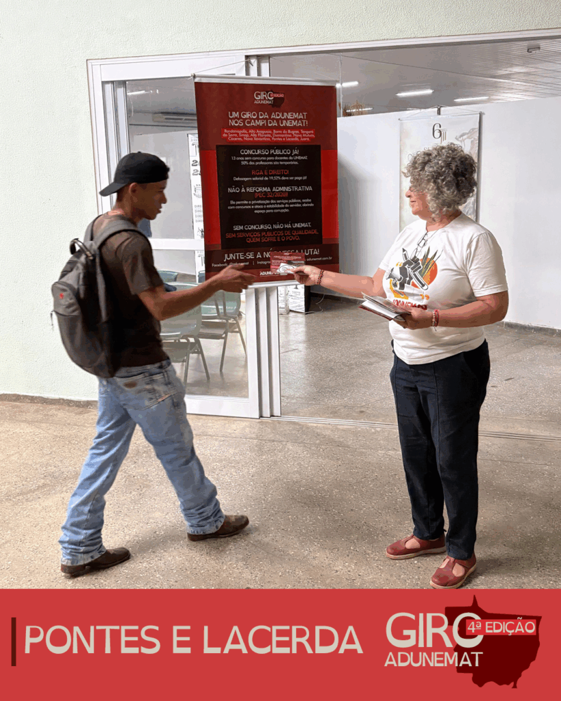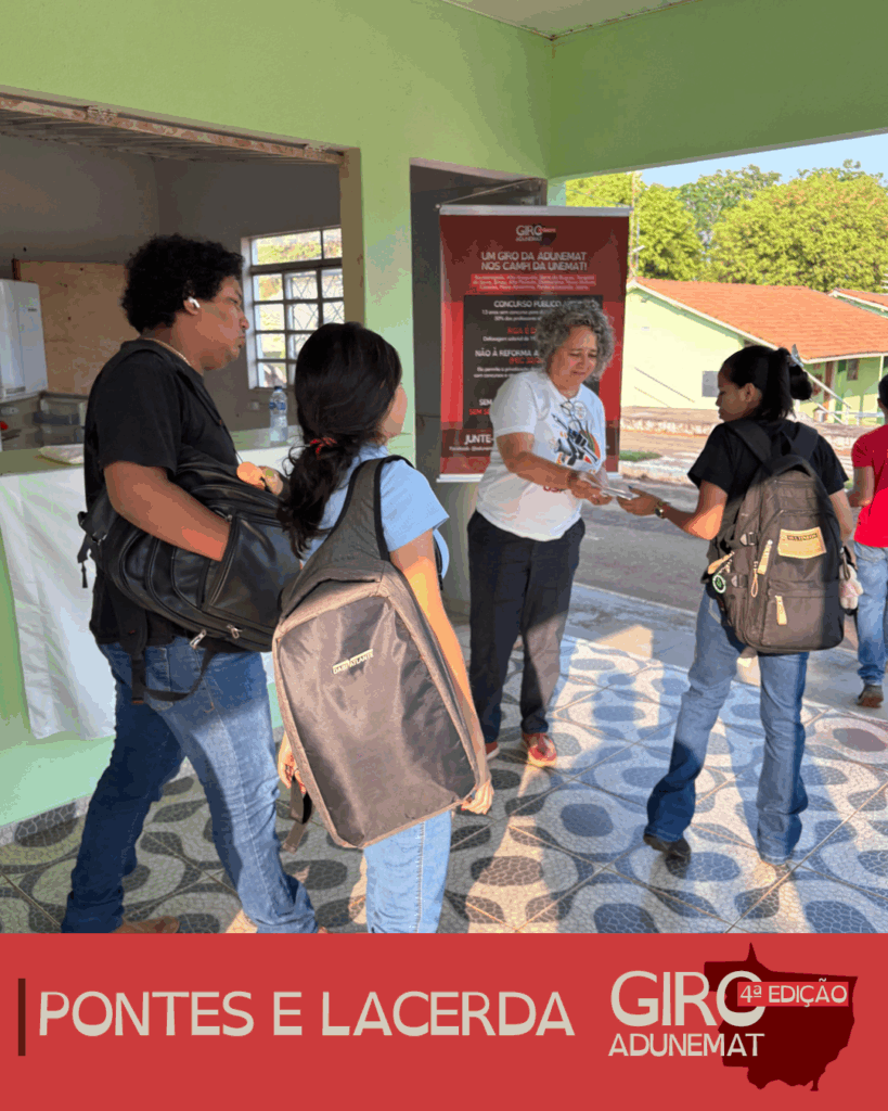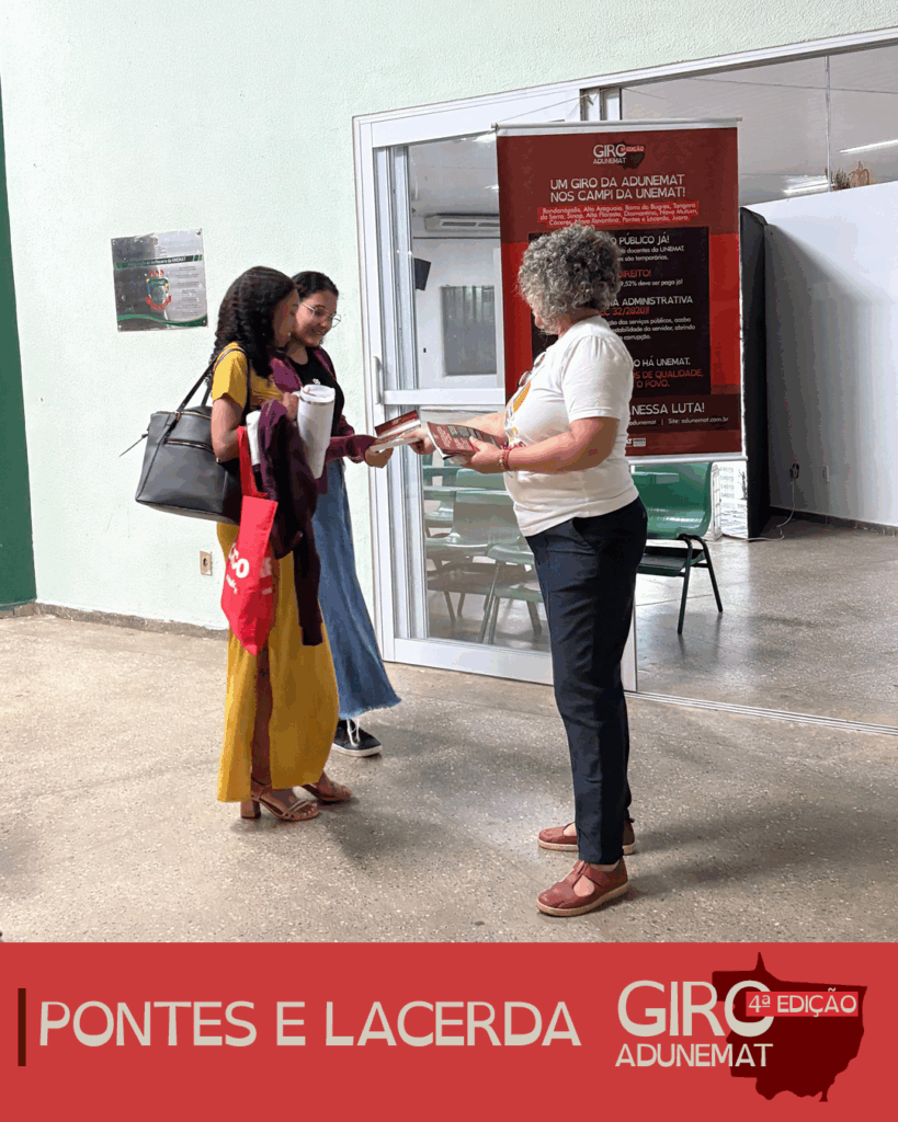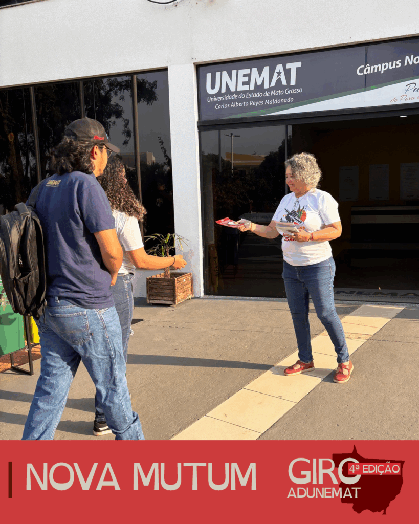 Mais do que uma agenda itinerante, o Giro se consolida como um instrumento de informação, diálogo e unidade na luta. Ao longo das últimas semanas, a diretoria percorreu os campi de Rondonópolis, Alto Araguaia, Barra do Bugres, Tangará da Serra, Sinop, Alta Floresta, Diamantino, Nova Mutum, Cáceres, Nova Xavantina e Pontes e Lacerda. Em cada parada, panfletagens, diálogos em salas de aula, diálogo com docentes, técnicos e estudantes reforçaram a importância de manter o sindicato próximo da base .