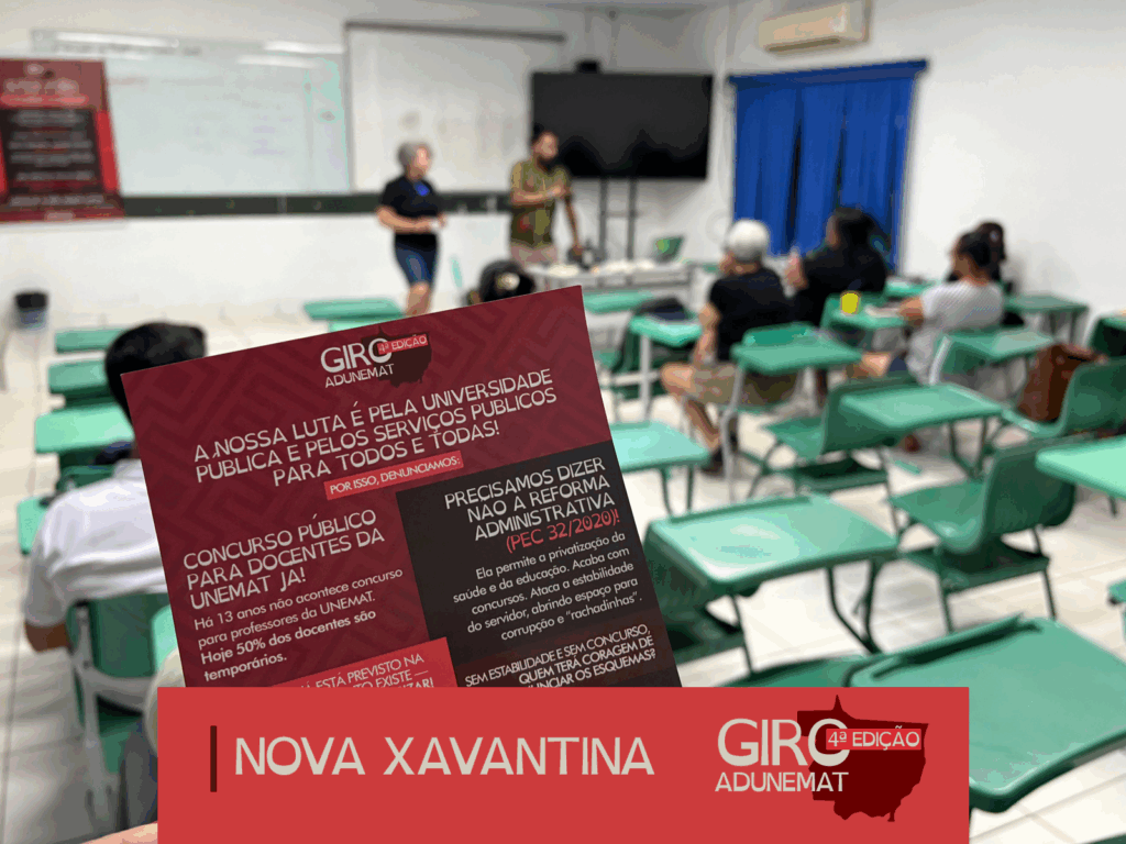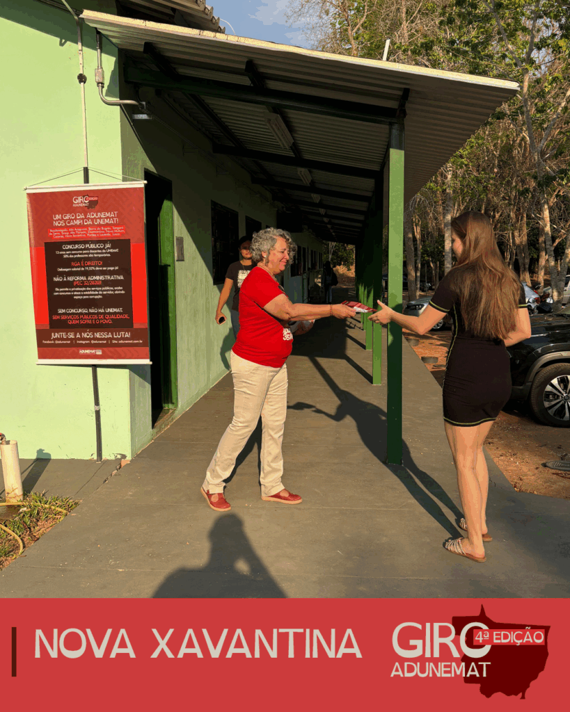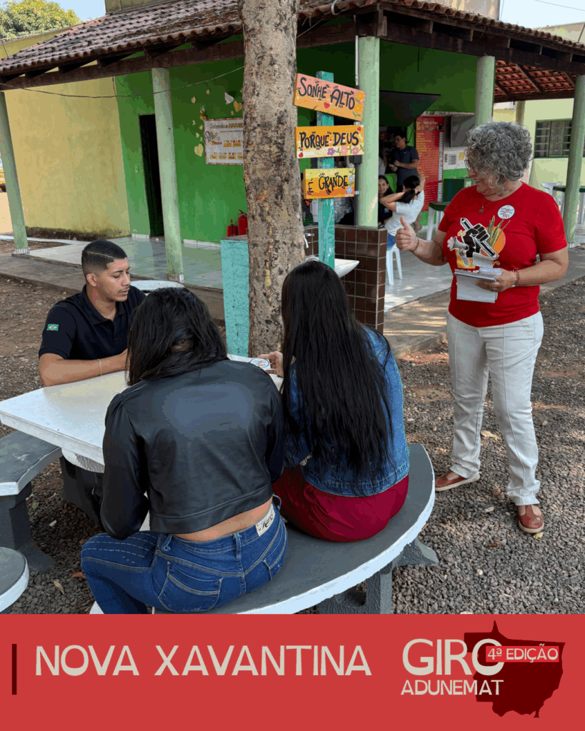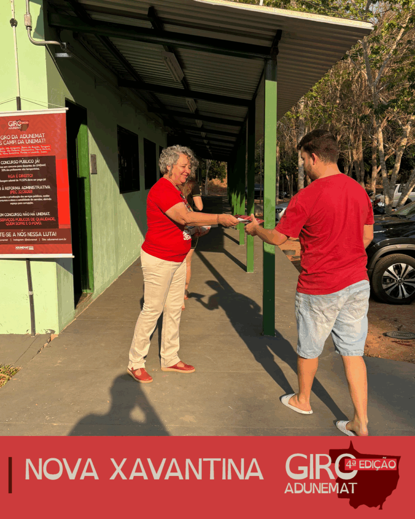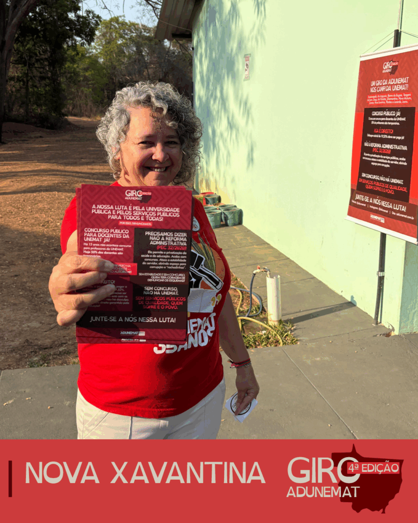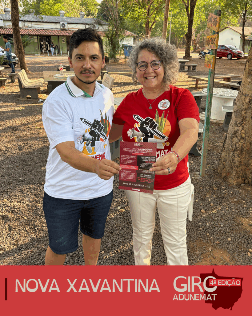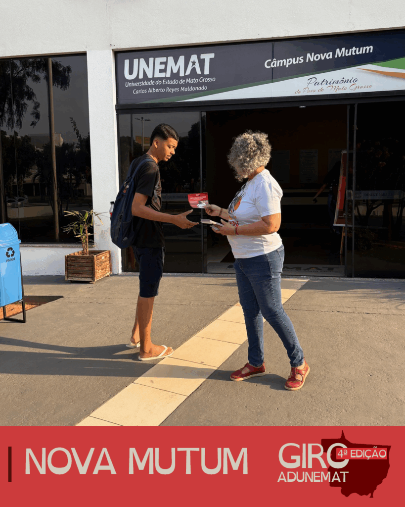 Em Nova Xavantina, a diretoria deu continuidade às visitas em sala de aula, aprofundando o diálogo com estudantes. Além da presidente Luciene Neves, participou das atividades o professor Ary Gertz, tesoureiro-adjunto da ADUNEMAT, que somou forças nas panfletagens e nas conversas com a comunidade acadêmica.