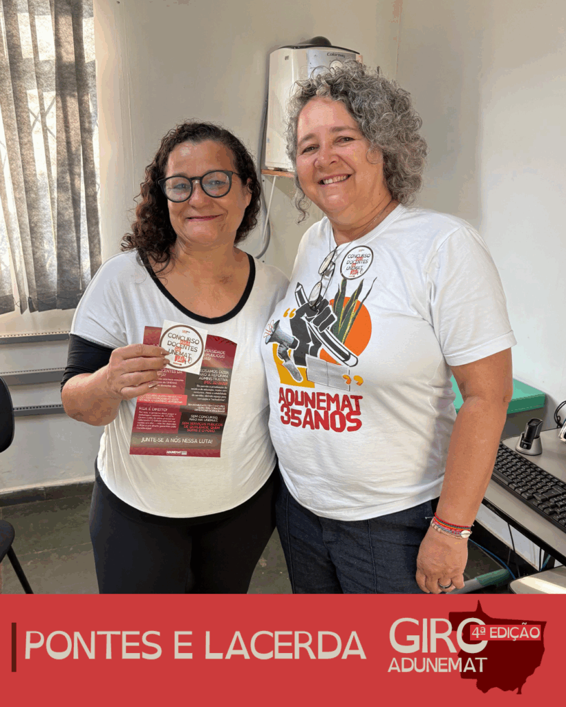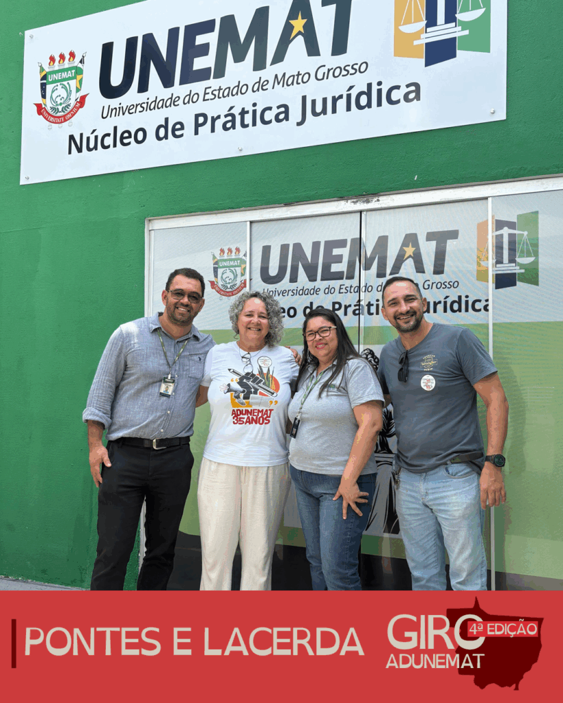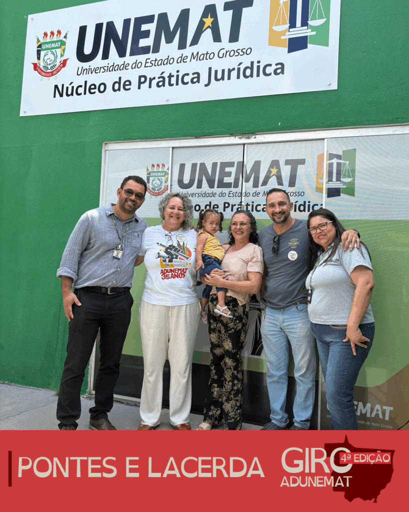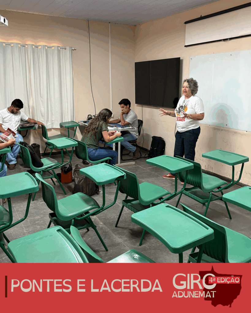 Já em Pontes e Lacerda, o Giro abriu espaço para o diálogo entre a ADUNEMAT e o SINTESMAT, envolvendo a atual gestão e representantes das chapas que concorrem à nova direção da seccional. O encontro tratou de pautas conjuntas, como o Plano de Carreira e Cargos dos Técnicos Administrativos (PCCTAE), e reforçou a necessidade de articulação entre as duas categorias na defesa da universidade pública. Durante a passagem, a diretoria também concedeu entrevista a uma emissora de TV local, destacando as principais reivindicações da campanha sindical.