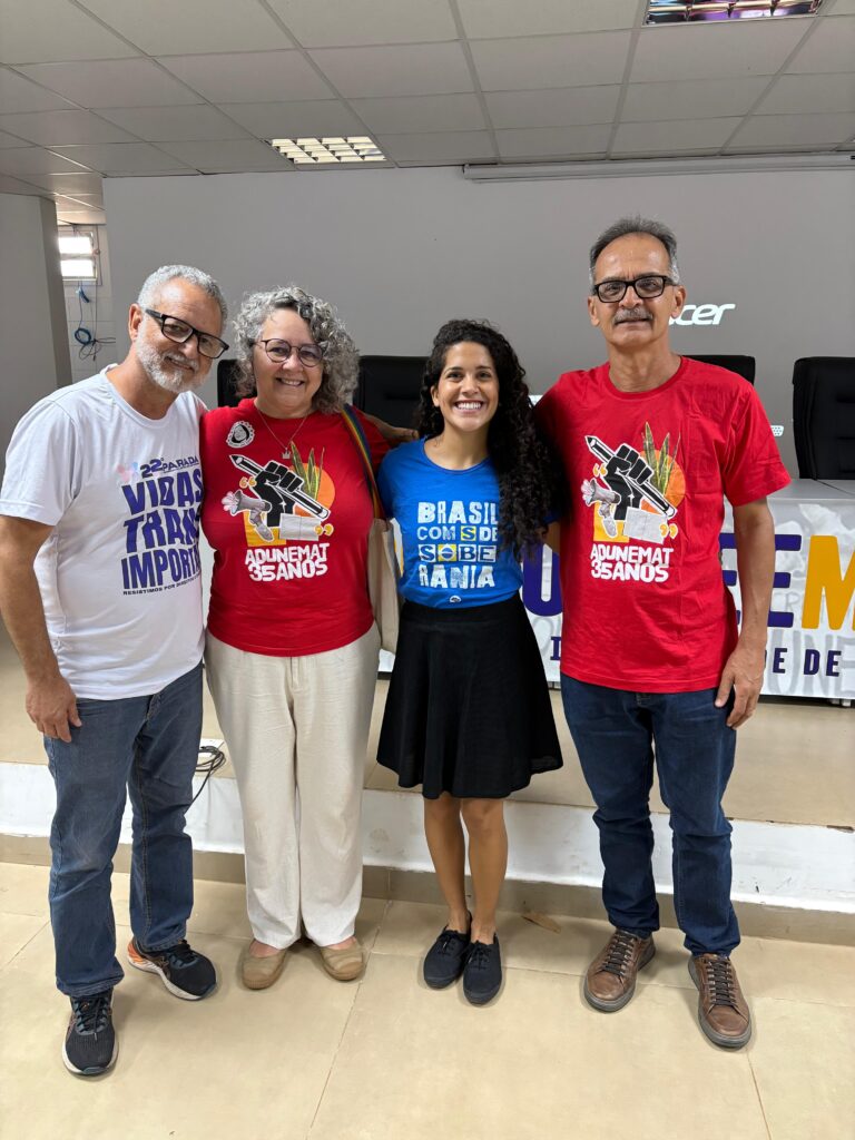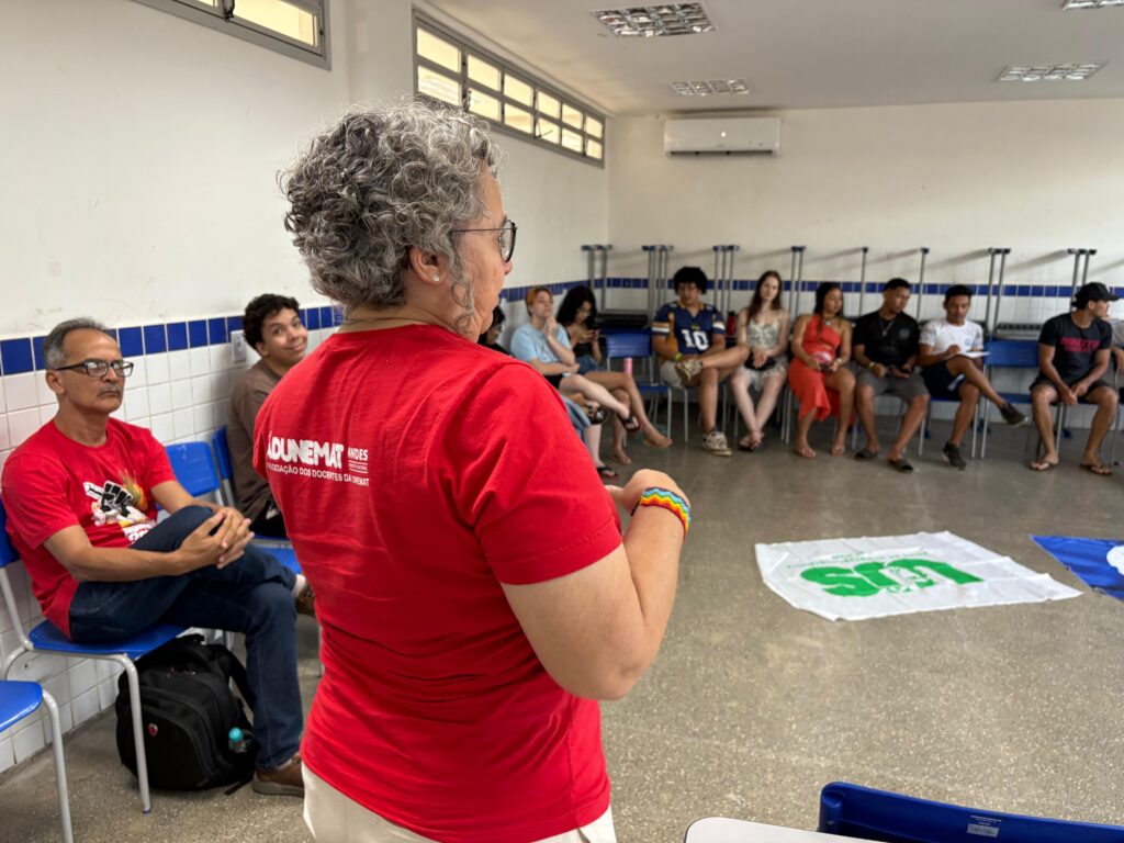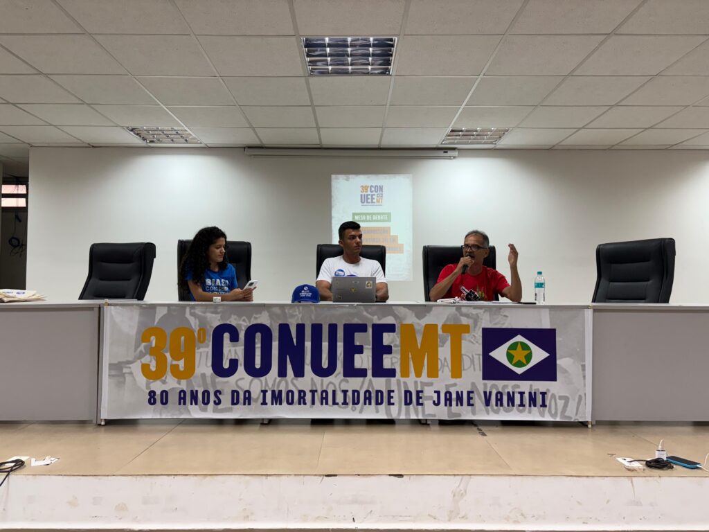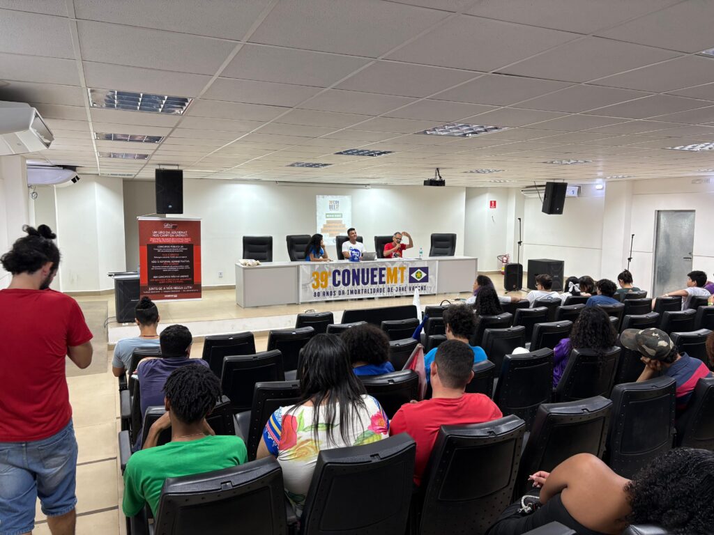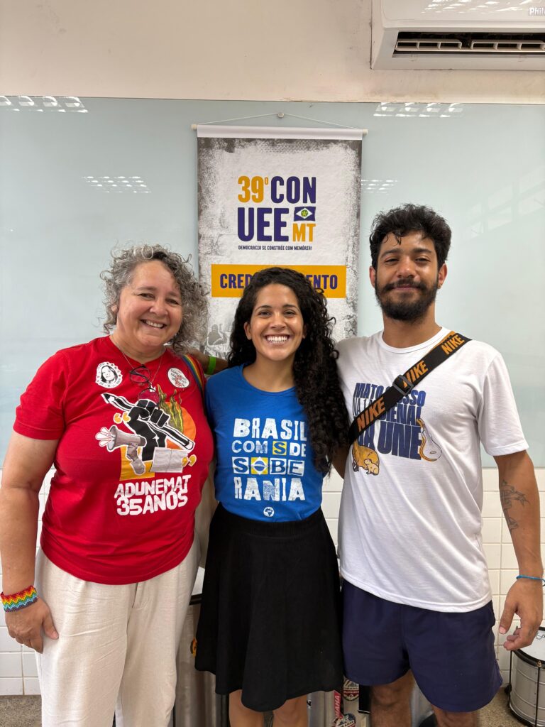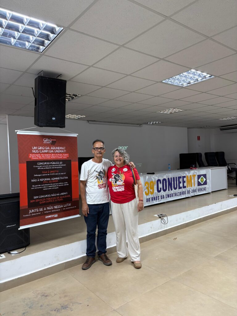 Em Cáceres, a passagem da ADUNEMAT coincidiu com a realização do CONUEE-MT (Congresso da União Estadual dos Estudantes de Mato Grosso), sediado na UNEMAT. A presidente Luciene Neves e o tesoureiro-geral Domingos Sávio participaram da programação oficial, levando à plenária o posicionamento da ADUNEMAT sobre a valorização da educação pública, o protagonismo de pessoas negras, LGBTQIAPN+ e povos tradicionais no ensino superior, o financiamento das universidades estaduais e a importância da unidade entre o movimento estudantil e o movimento docente.