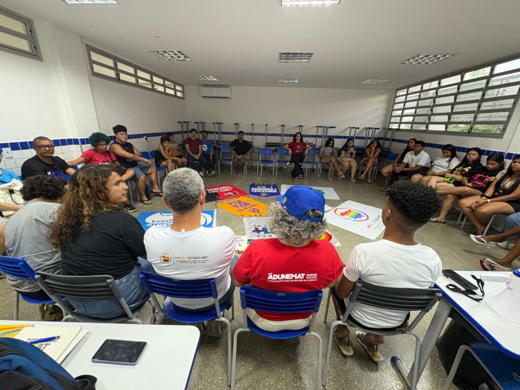 Já Nova Mutum abriu as ações de outubro, nos dias 1º e 2, com debates sobre a necessidade urgente de concurso público para docentes, após 13 anos sem edital, e sobre a recomposição das perdas salariais (RGA). Em encontros marcados por panfletagens, distribuição de materiais e falas em sala de aula, a diretoria também abordou os impactos da Reforma Administrativa e reafirmou a defesa do serviço público e da carreira docente.