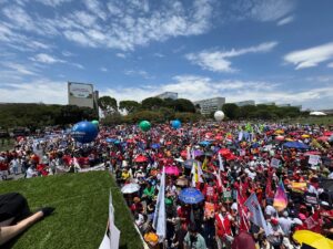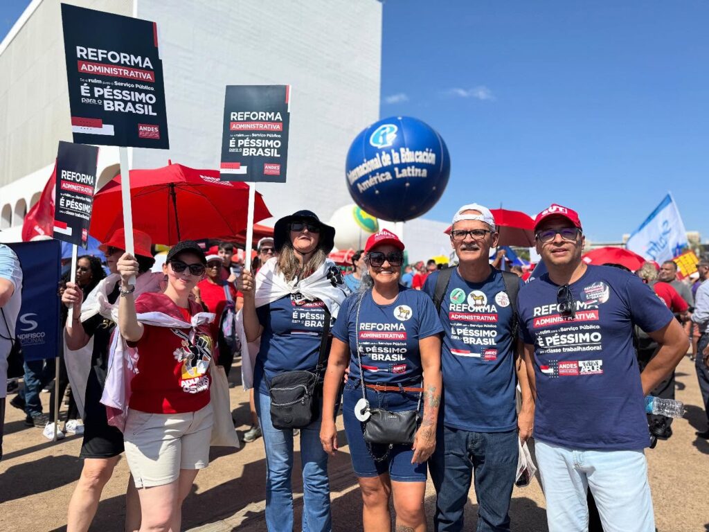 Mais de 20 mil servidoras e servidores públicos de todo o país participaram, na manhã desta quarta-feira (29/10), da Marcha Nacional do Serviço Público contra a Reforma Administrativa, em Brasília (DF). Educadoras e educadores de diversas redes, unidndo municipal, estadual e federal tomaram a Esplanada dos Ministérios em uma grande demonstração de unidade e resistência, com uma mensagem clara ao Congresso Nacional: “Não vai ter breque, vai ter luta!”