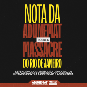 A nota também segue disponível para download no site, na aba notas, no link aqui: https://adunemat.com.br/wp-content/uploads/2025/10/NOTA-DA-ADUNEMAT-SOBRE-O-MASSACRE-DO-RIO-DE-JANEIRO.docx.pdf