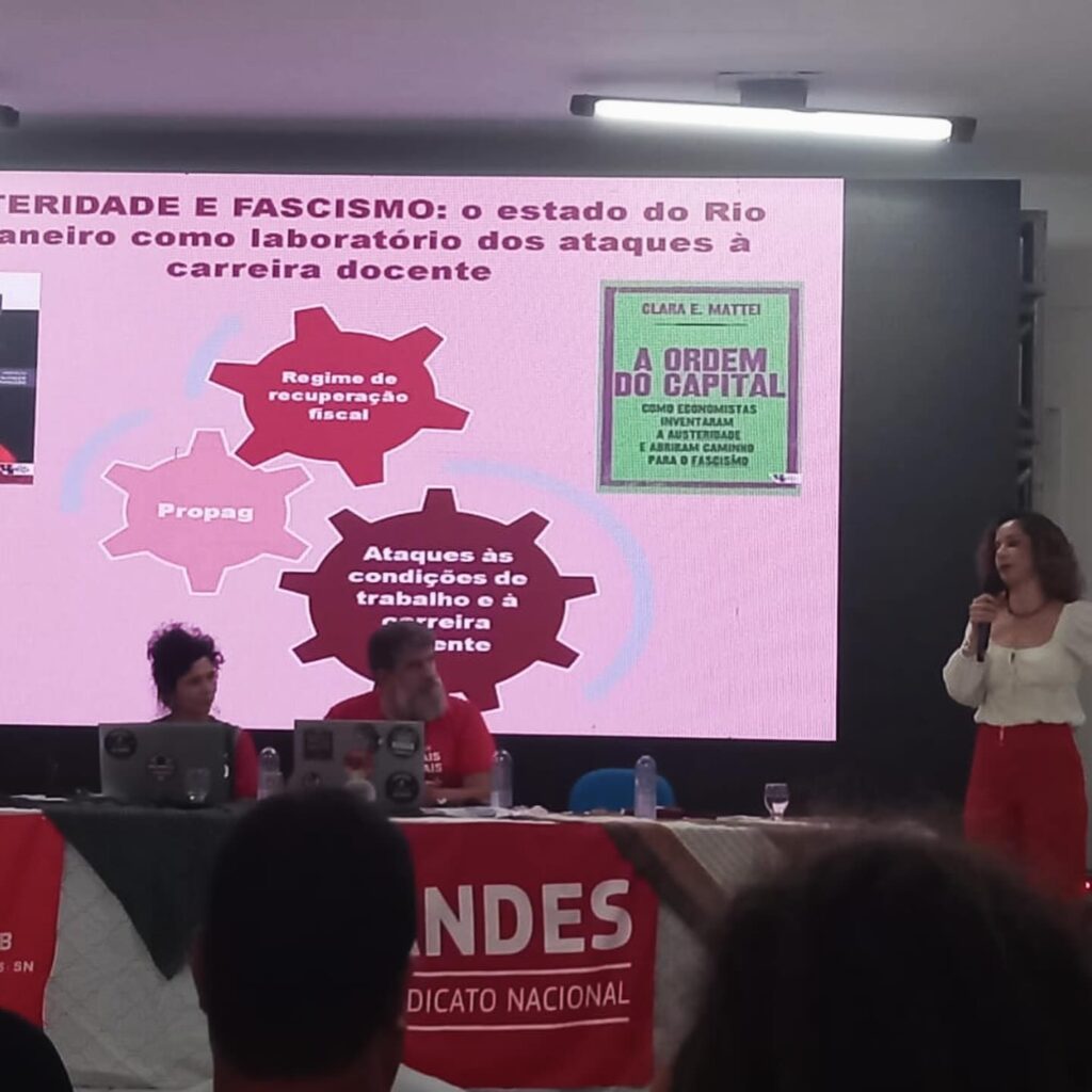 “É um encontro muito importante, porque ele é um encontro menor e foca nas universidades estaduais, municipal e distrital. Ele conseguiu discutir a questão da carreira, salários e condições de trabalho de forma muito específica, que são as formas que atingem essas universidades. Foi um encontro extremamente importante para a gente pensar no desenho da carreira única, para construir essa carreira e para refletir sobre as principais questões que nos assaltam no momento, como o PL 38, que ensaia também no Brasil uma reforma administrativa que, de reforma, não tem nada, é uma contrarreforma que desfaz os serviços públicos e ameaça os fundos de previdência sociais. Conseguimos falar sobre isso, nos posicionar e tirar encaminhamentos importantes de lutas para as diversas seções sindicais presentes. A gente cresce muito e traz de lá também indicativos coletivos para serem operacionalizados nas seções sindicais.”