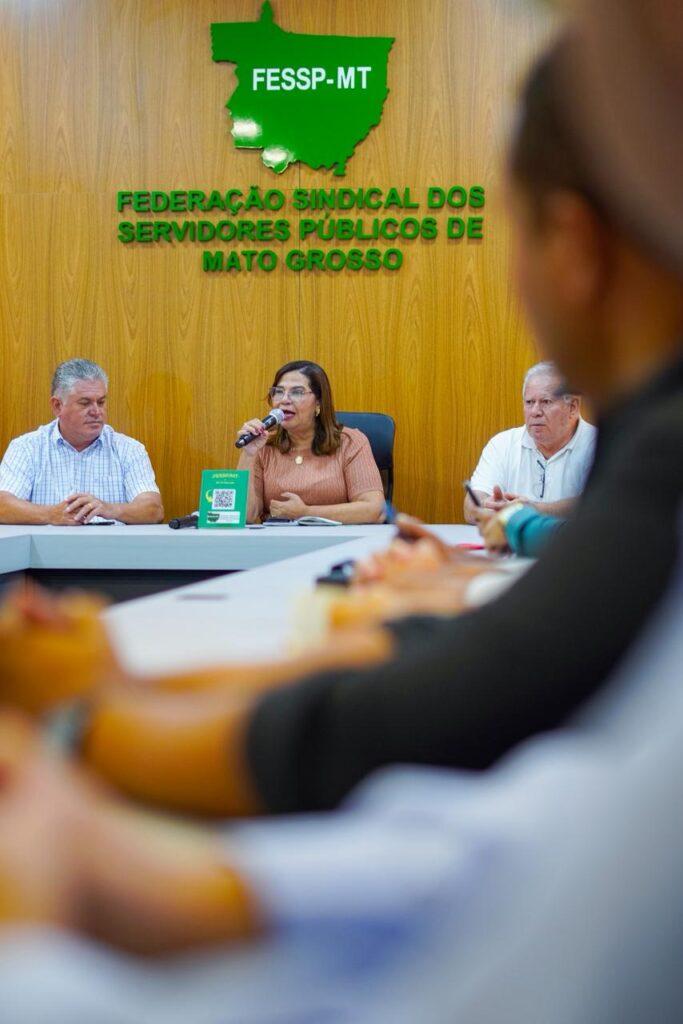 Em uma reunião marcada pelo aceno político e pela defesa do serviço público, a Federação Sindical dos Servidores Públicos de Mato Grosso (FESSP-MT) reuniu nesta terça-feira (09/12), em Cuiabá, entidades sindicais e associativas de servidores municipais, estaduais e federais. A ADUNEMAT, representada pela presidenta, professora Luciene Neves, esteve presente e teve voz ativa ao reforçar que, além da construção de unidade para 2026, uma pauta que segue unificando toda a categoria é a luta pela Revisão Geral Anual (RGA).