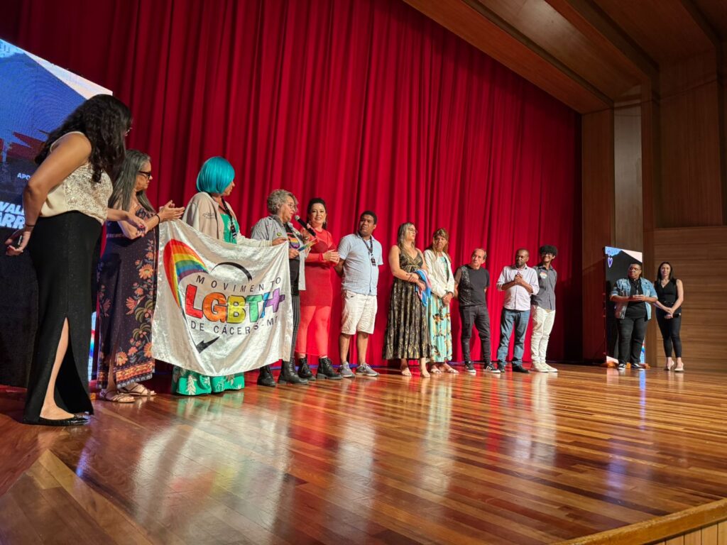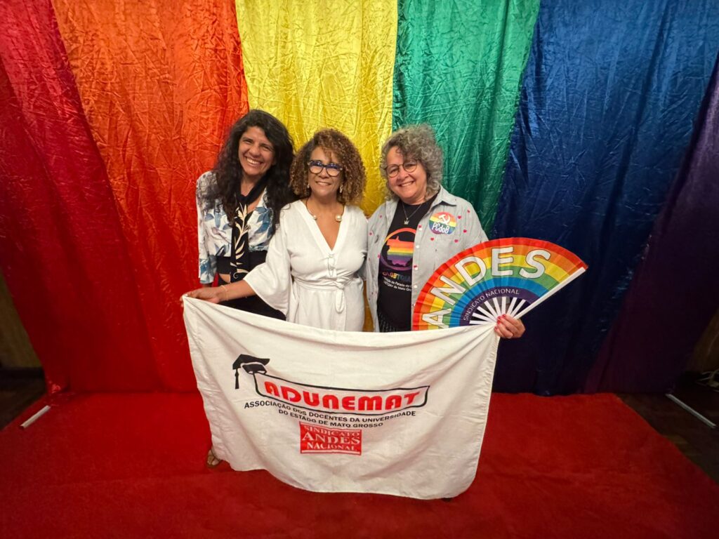 A ADUNEMAT (Associação dos Docentes da Universidade do Estado de Mato Grosso), Seção Sindical do Andes-SN, participou do lançamento da 23ª Parada do Orgulho LGBTQIA+ de Mato Grosso, na noite de sexta-feira (21), no Cine Teatro Cuiabá. Representada pela presidente Luciene Neves, a ADUNEMAT reafirmou seu compromisso histórico com as lutas sociais e a defesa dos direitos humanos. Também participaram do evento os professores sindicalizados Diones Krinski, Edna Sampaio e Suely Siqueira.