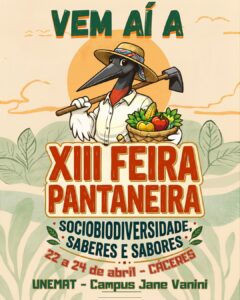 Entre os dias 22 e 25 de abril de 2026, o campus Jane Vanini da Universidade do Estado de Mato Grosso, em Cáceres, será palco da XIII Feira Pantaneira: Sociobiodiversidade, Saberes e Sabores, um dos principais espaços de articulação entre universidade pública, movimentos sociais e iniciativas da economia solidária no estado.